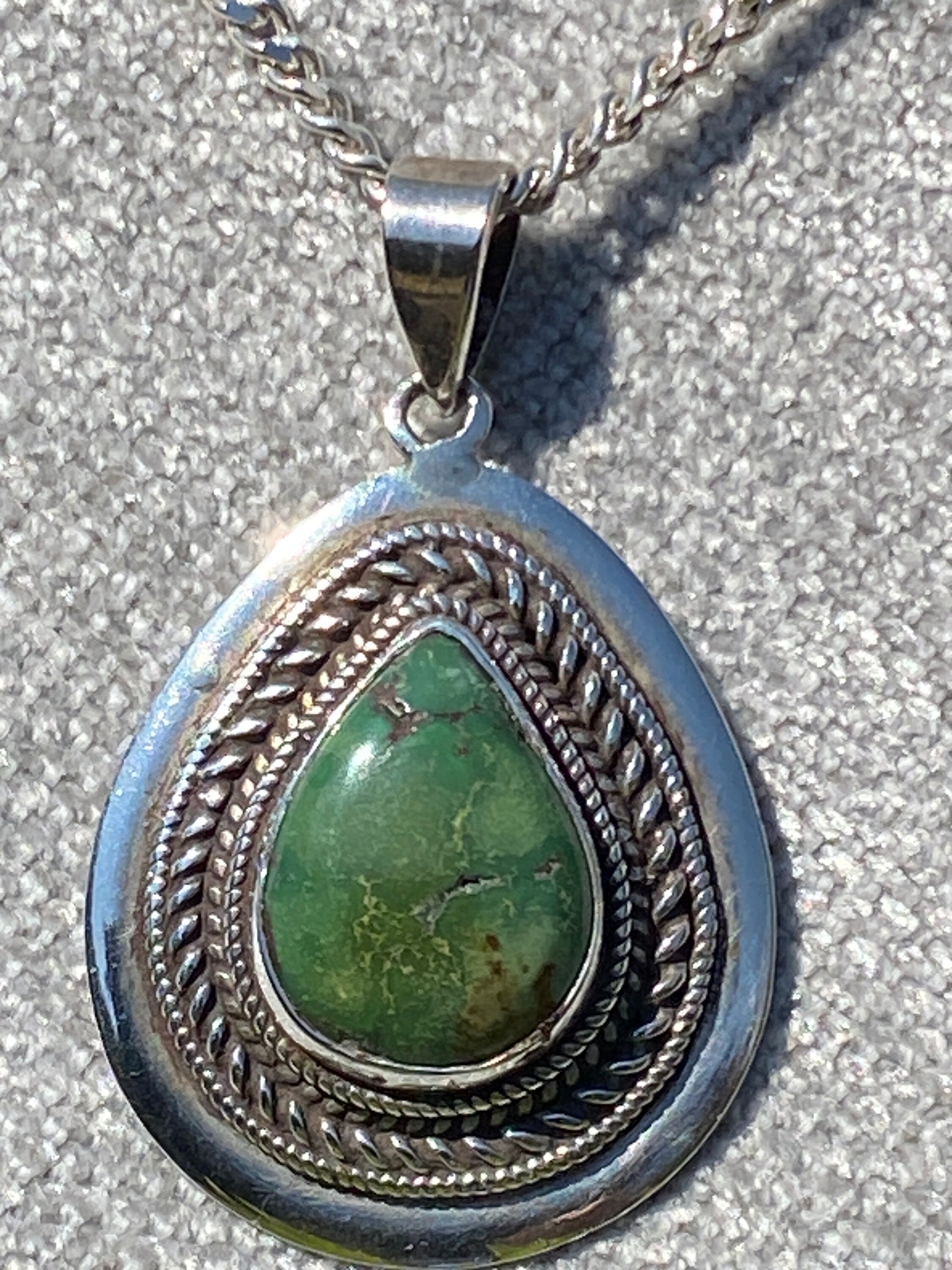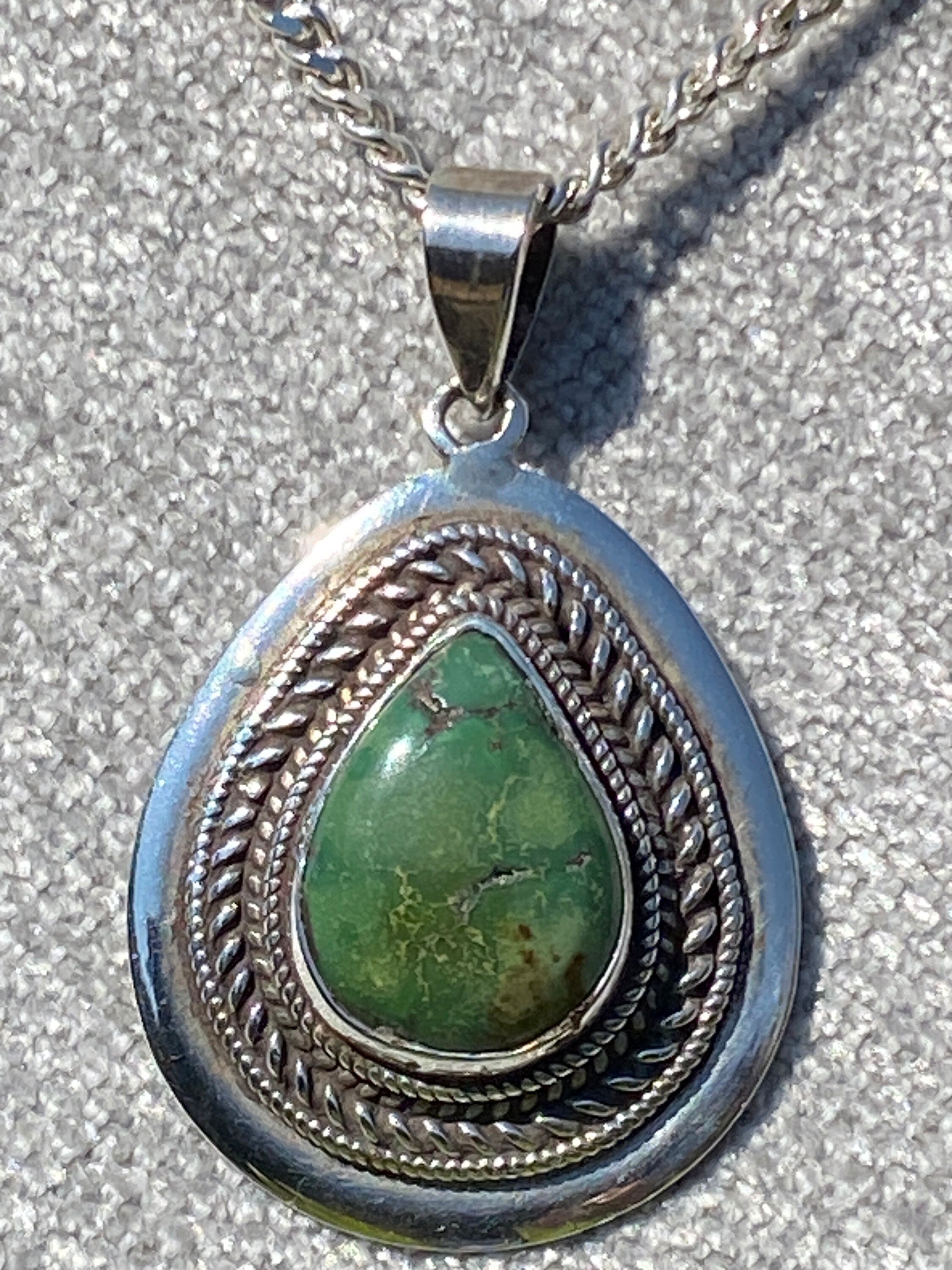 A well made sterling silver necklace set with a natural Turquoise stone in a rope setting