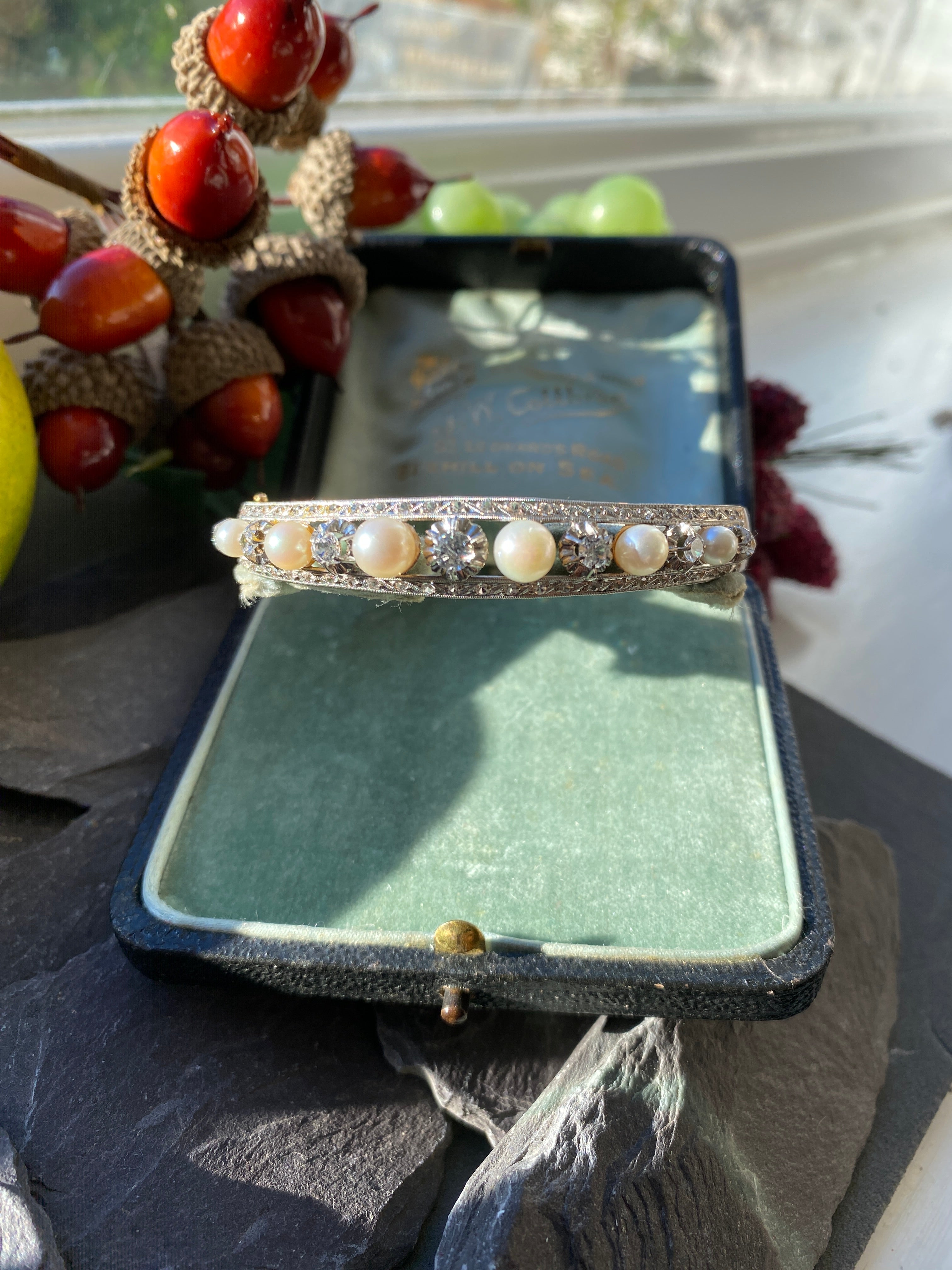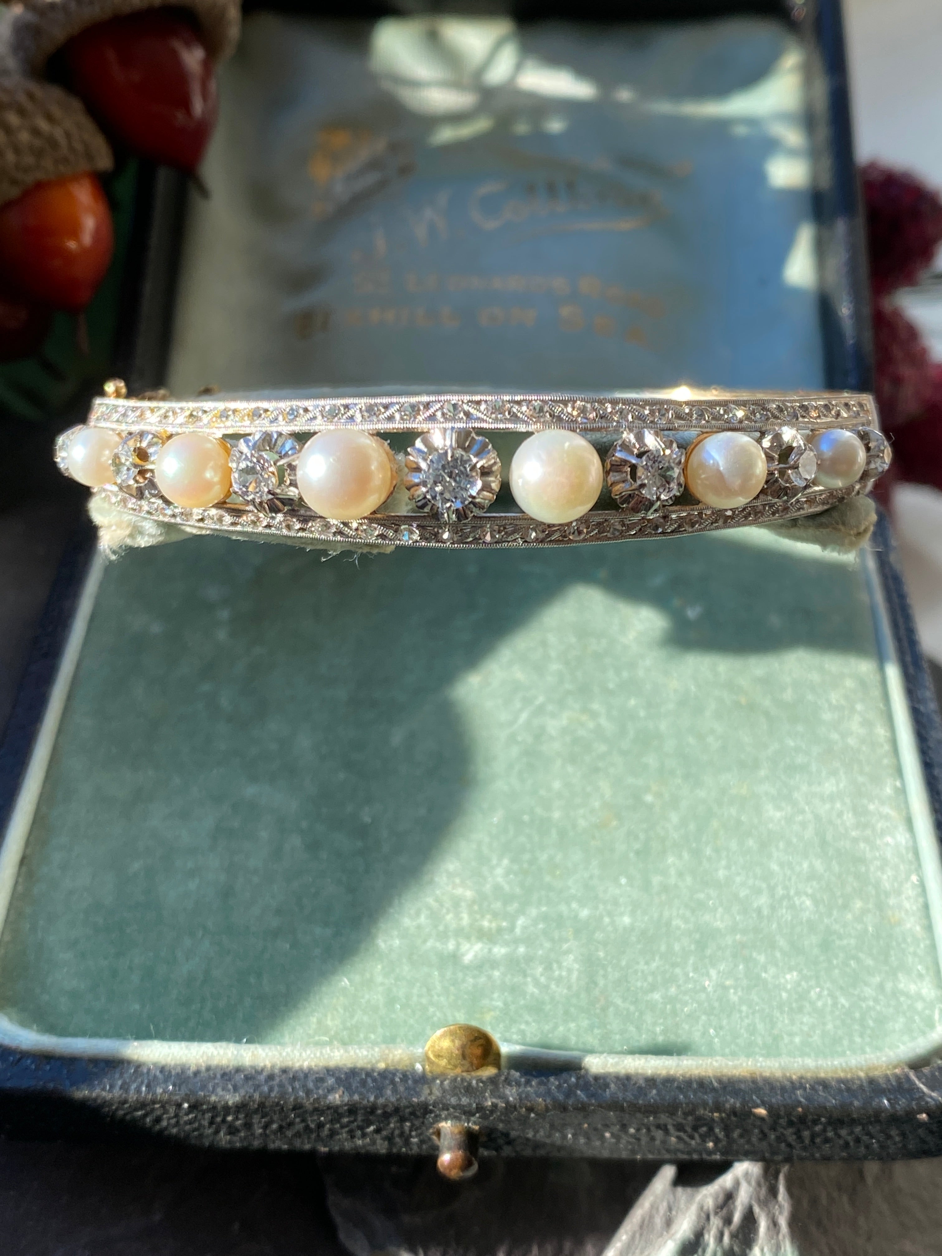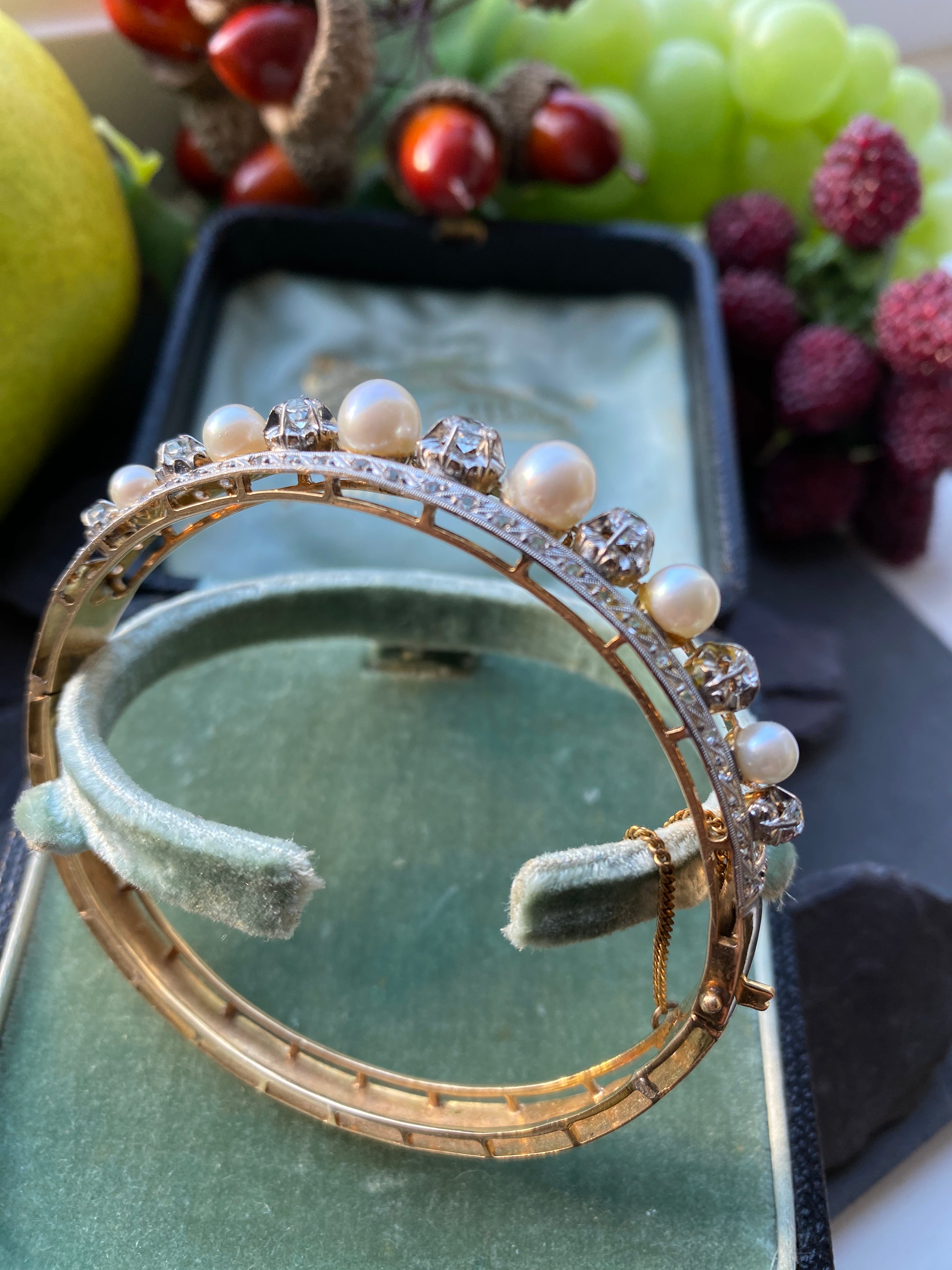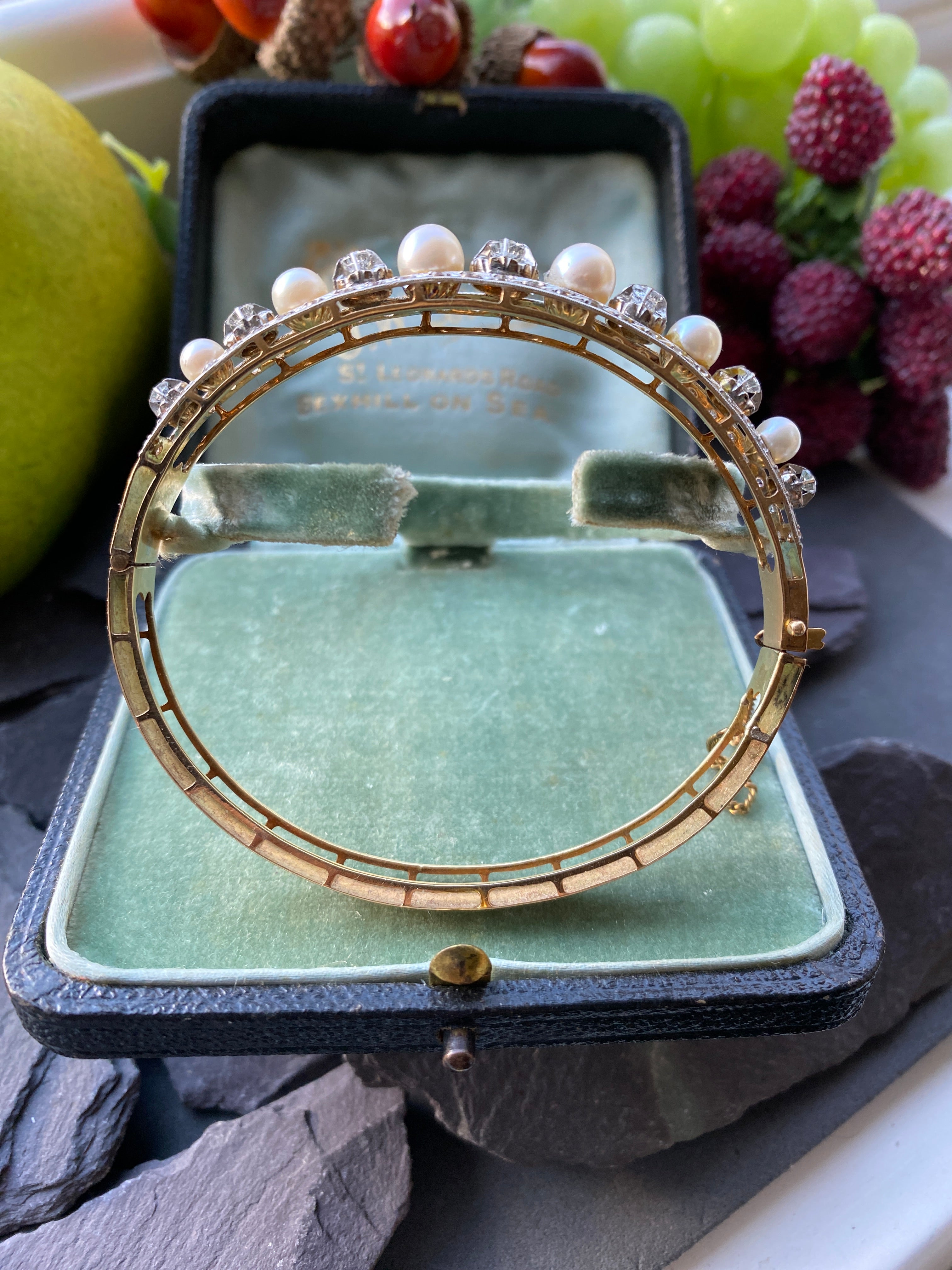 A stunning Antique Vermeil Pearl & Spinel Bangle Bracelet.