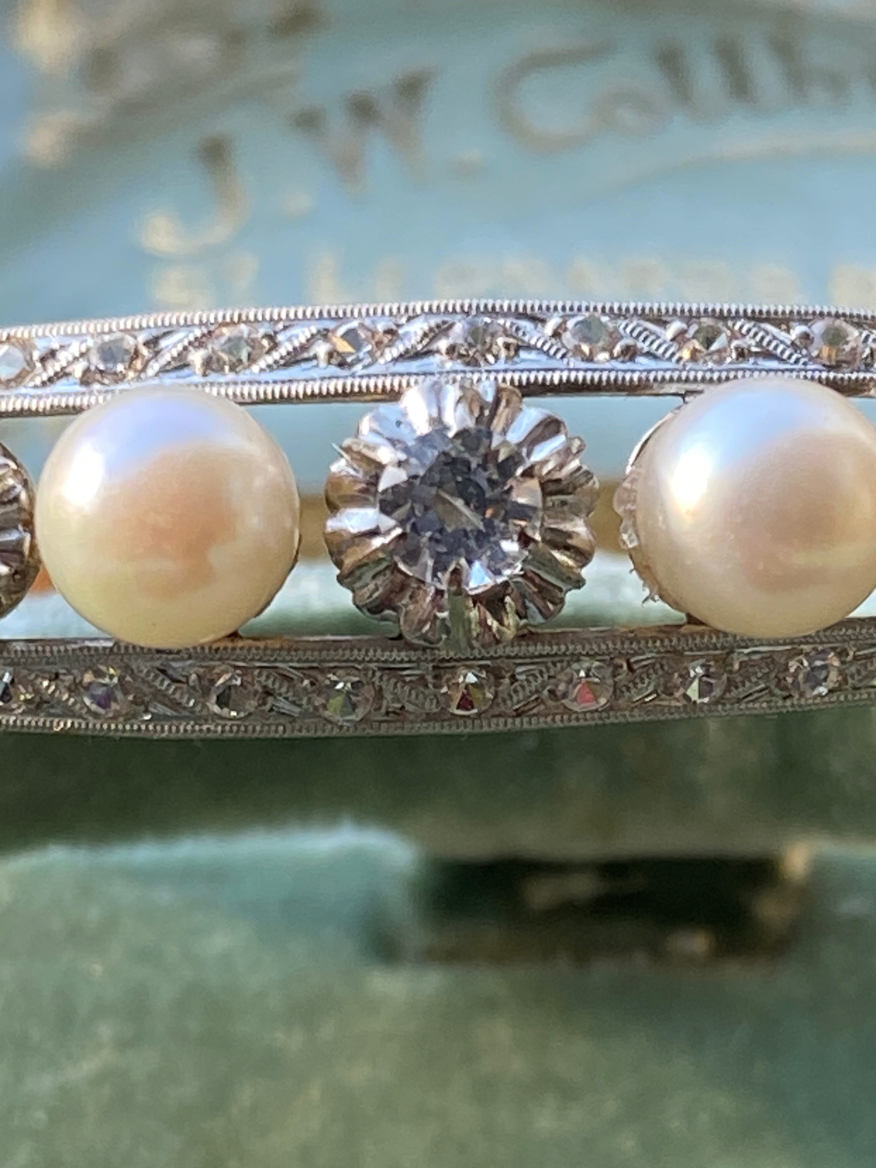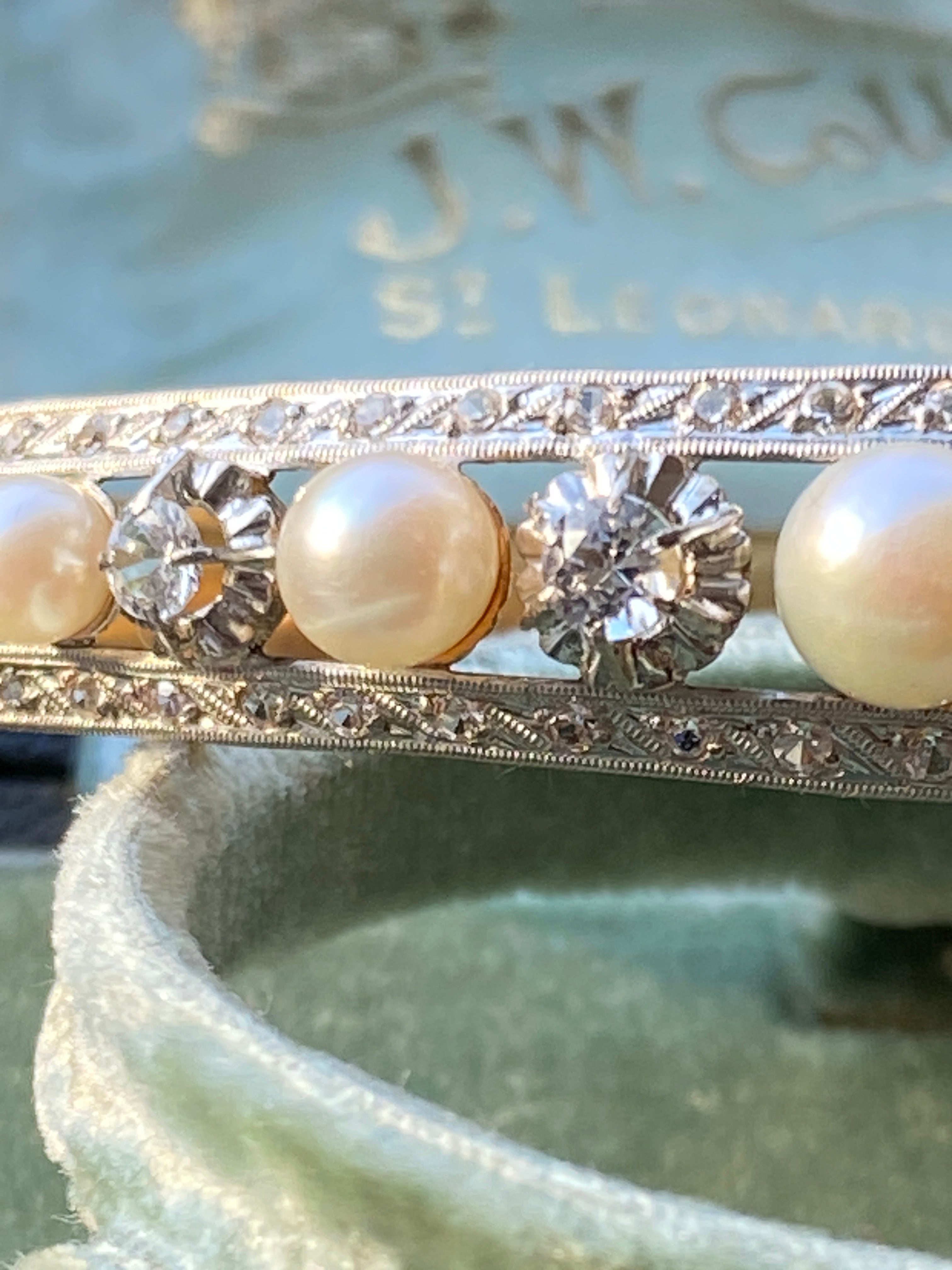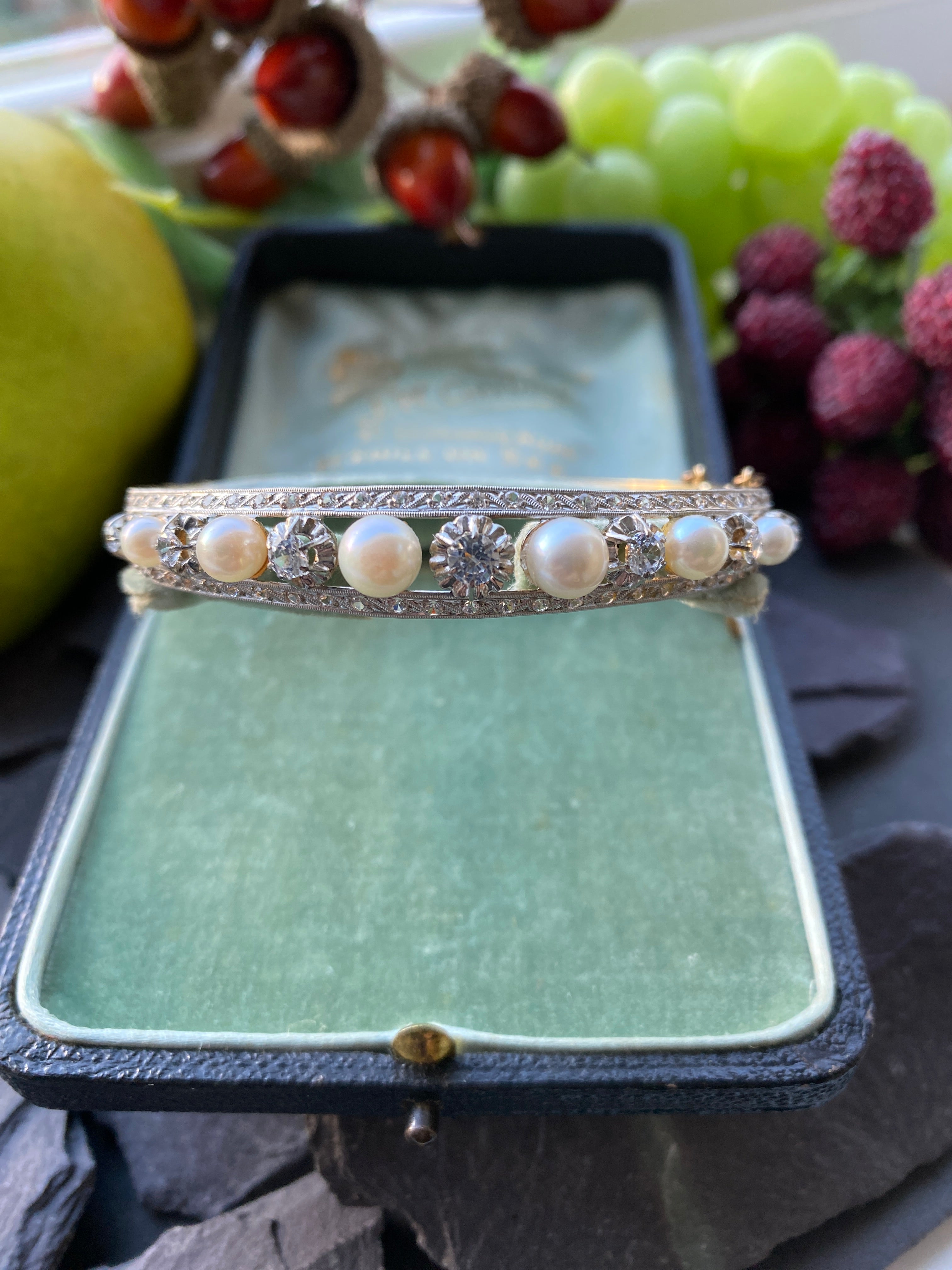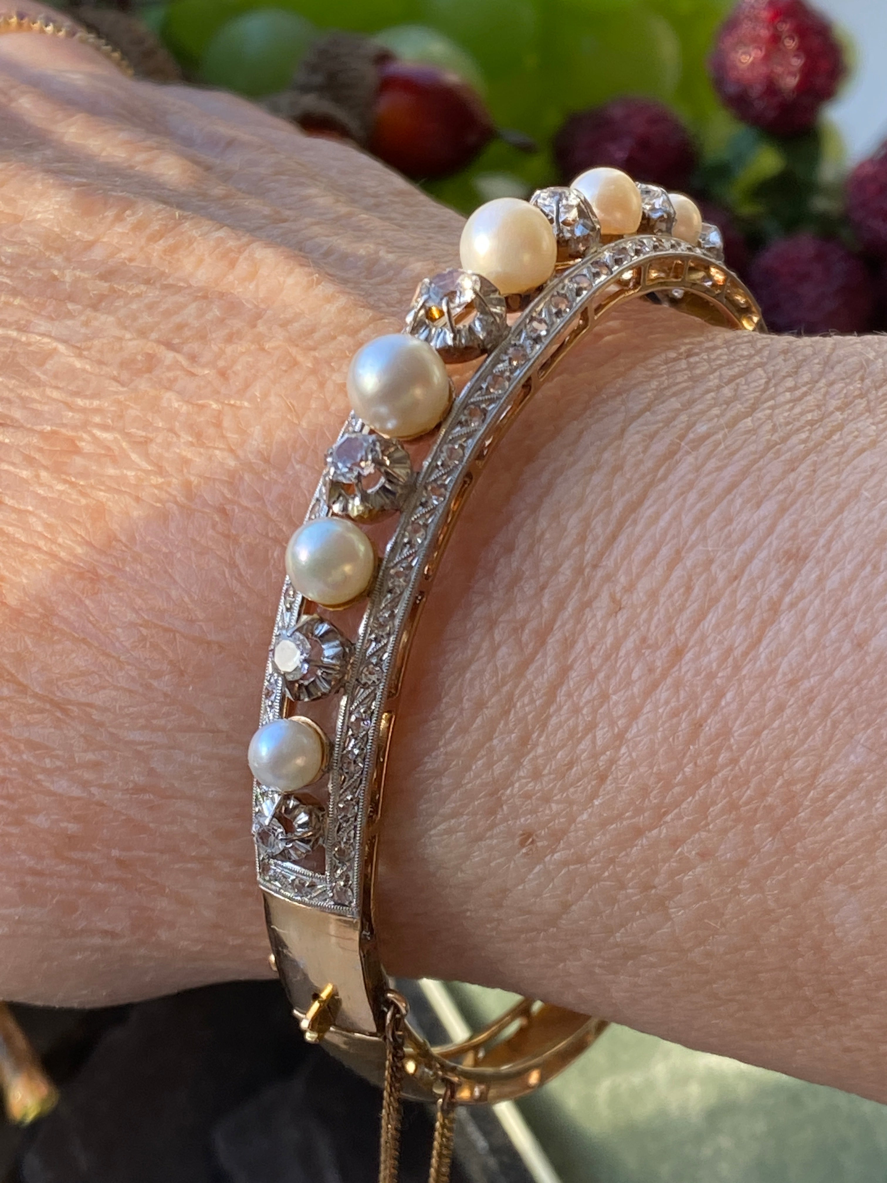 A stunning Antique Vermeil Pearl & Spinel Bangle Bracelet.