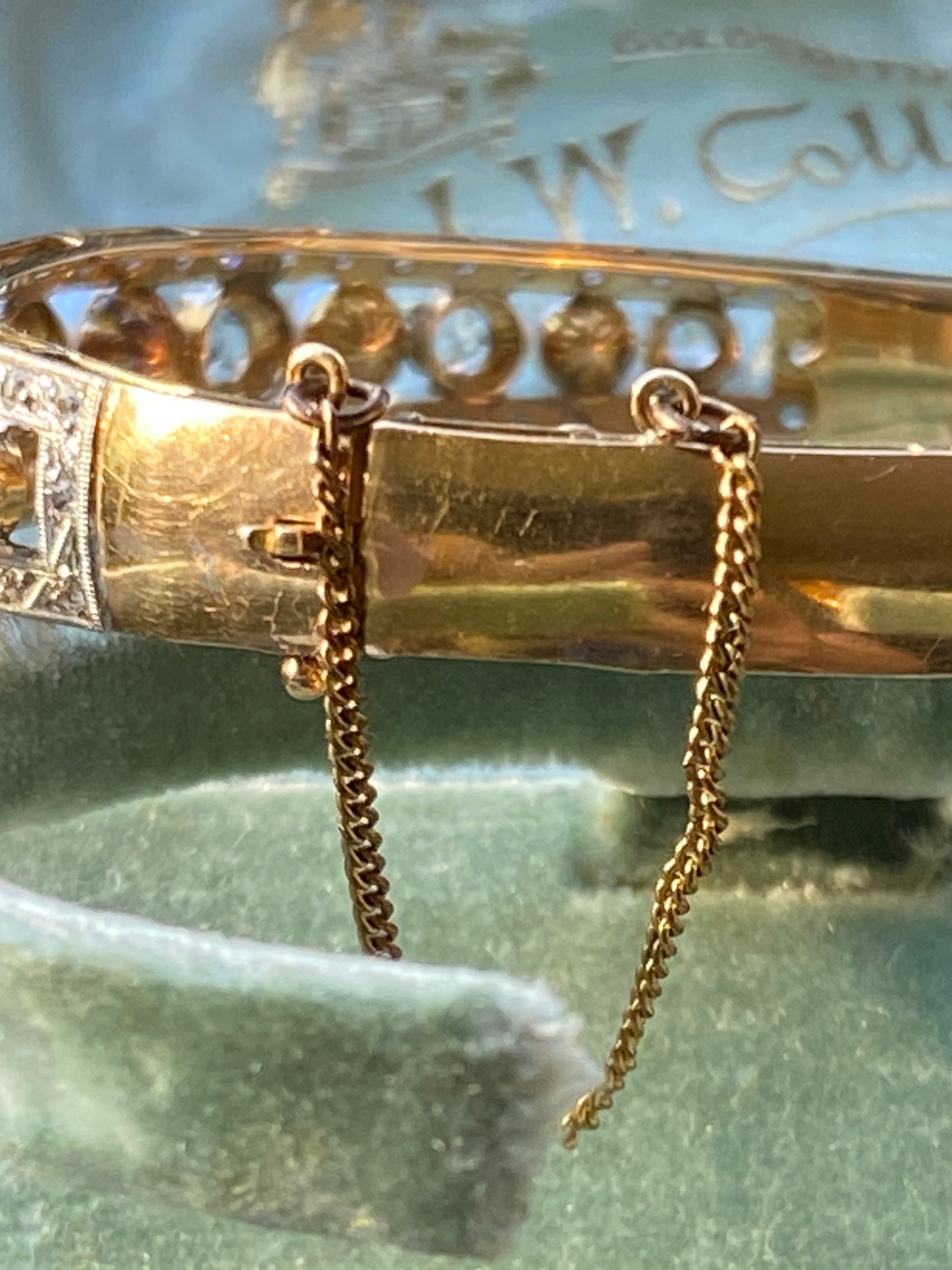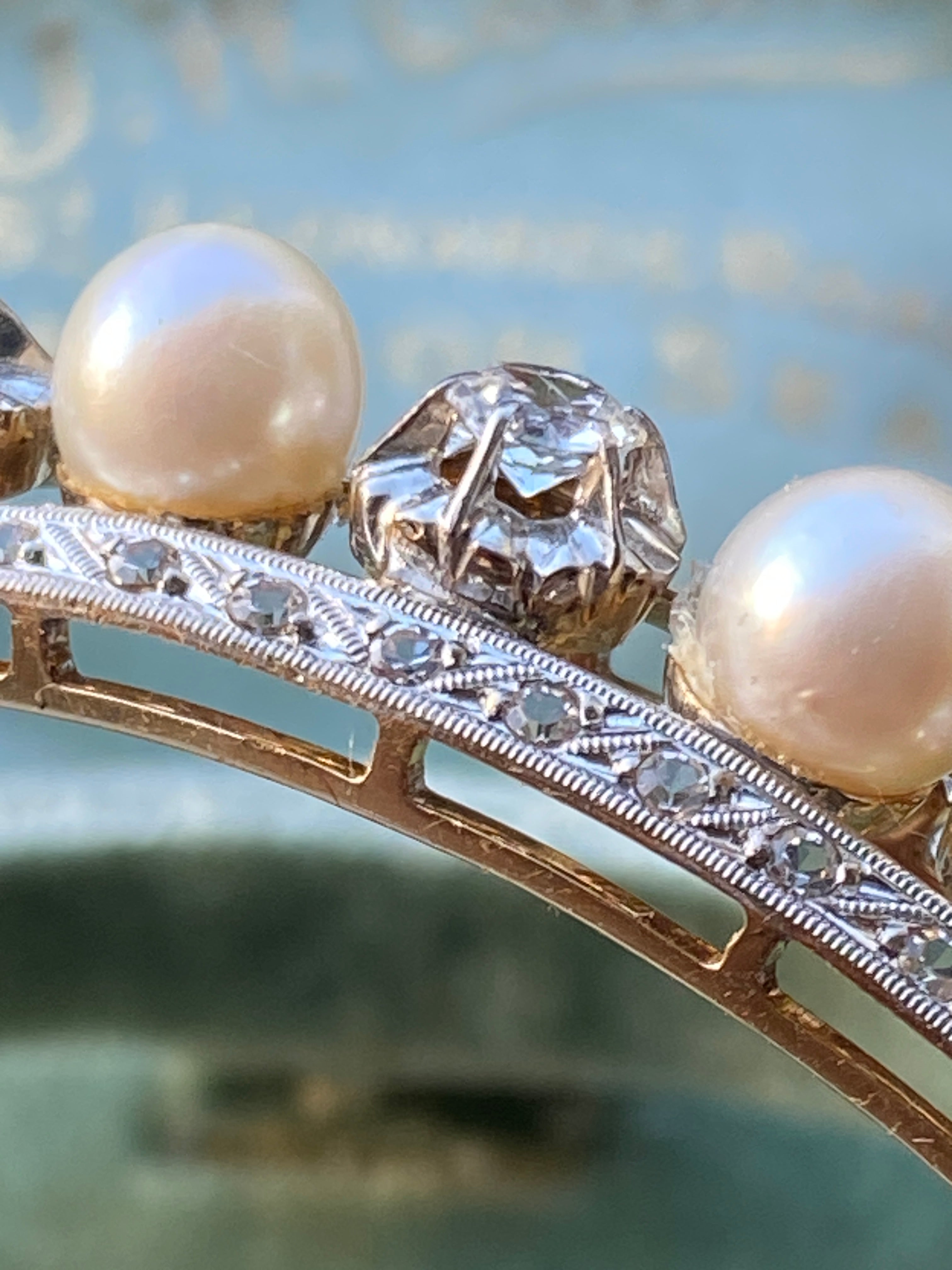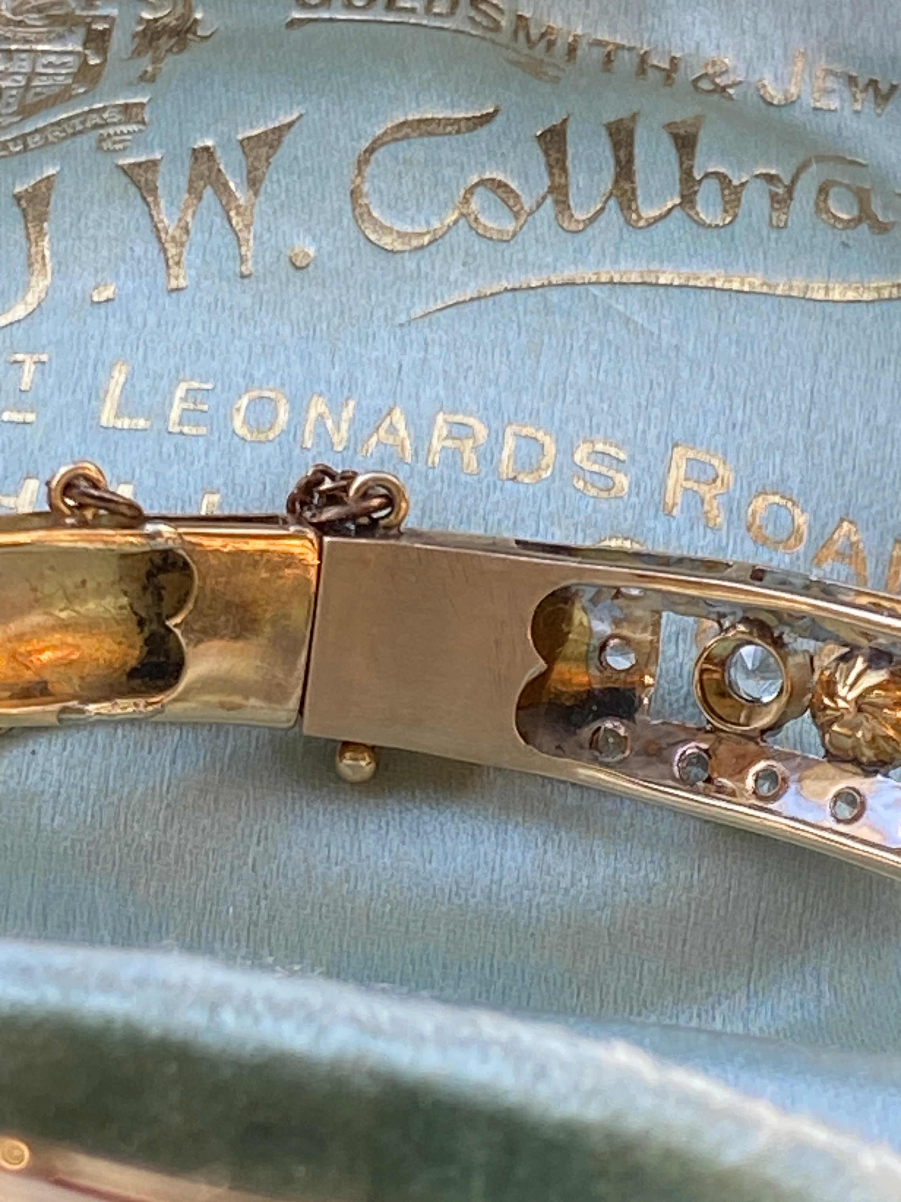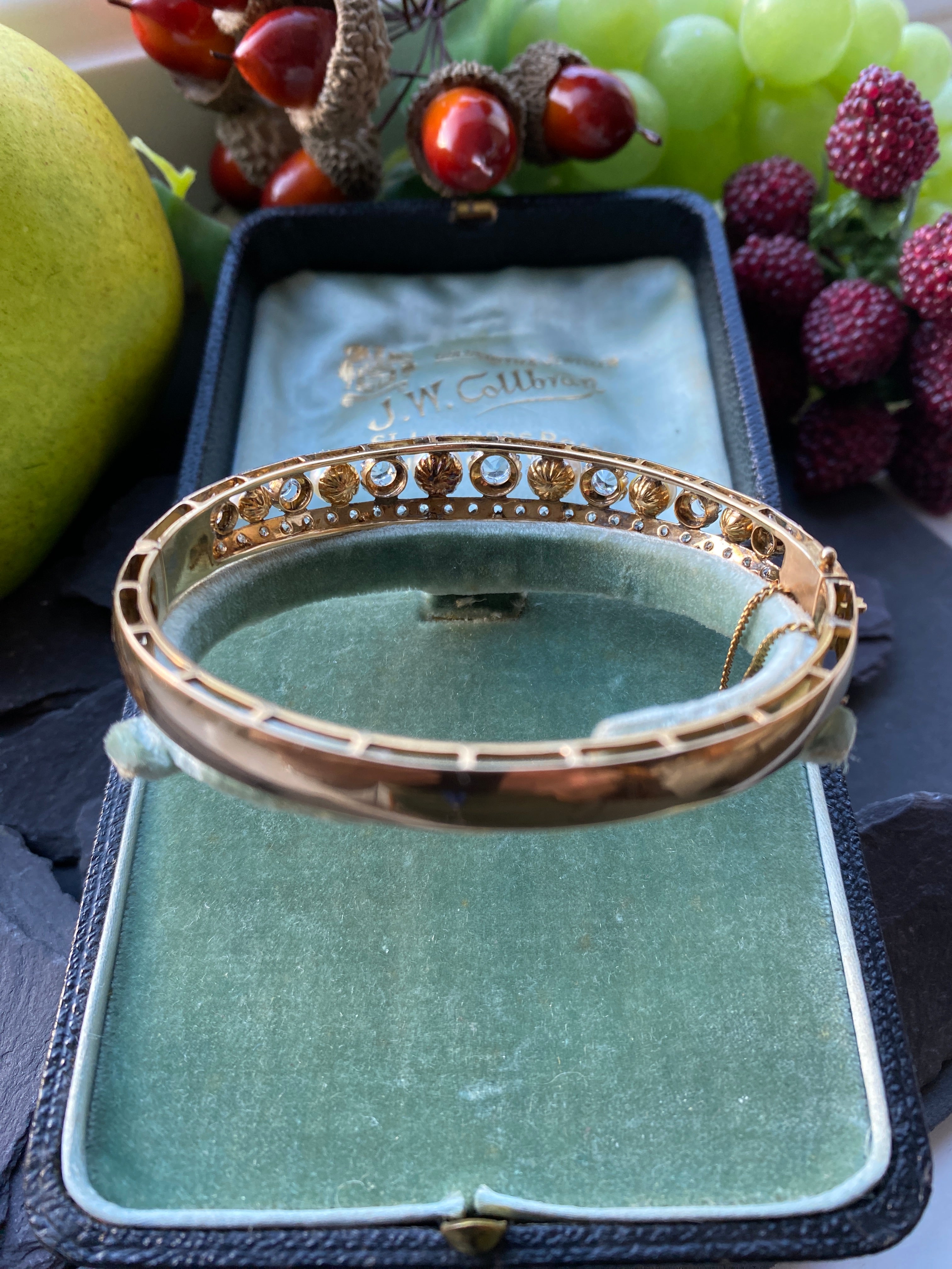 A stunning Antique Vermeil Pearl & Spinel Bangle Bracelet.