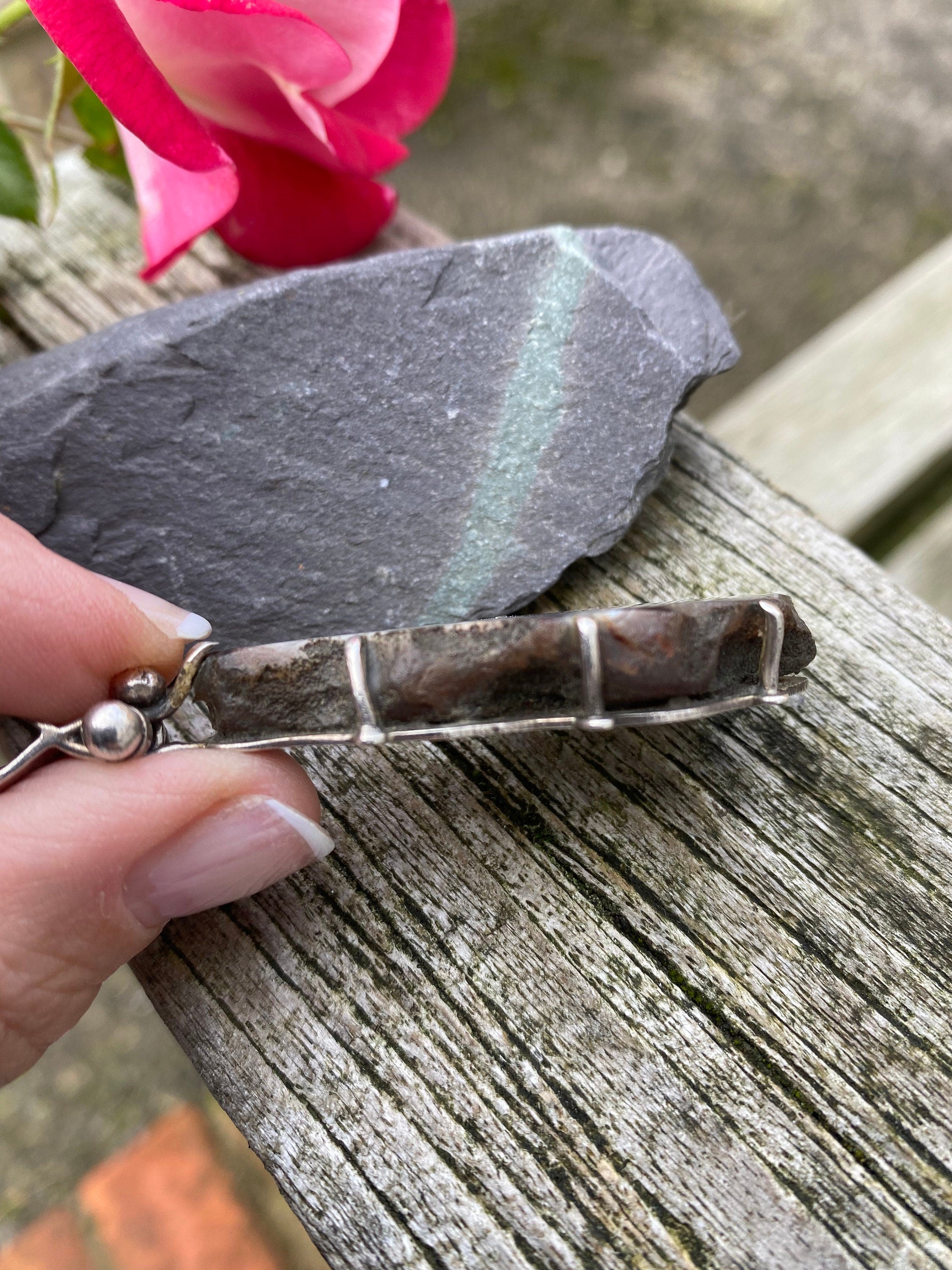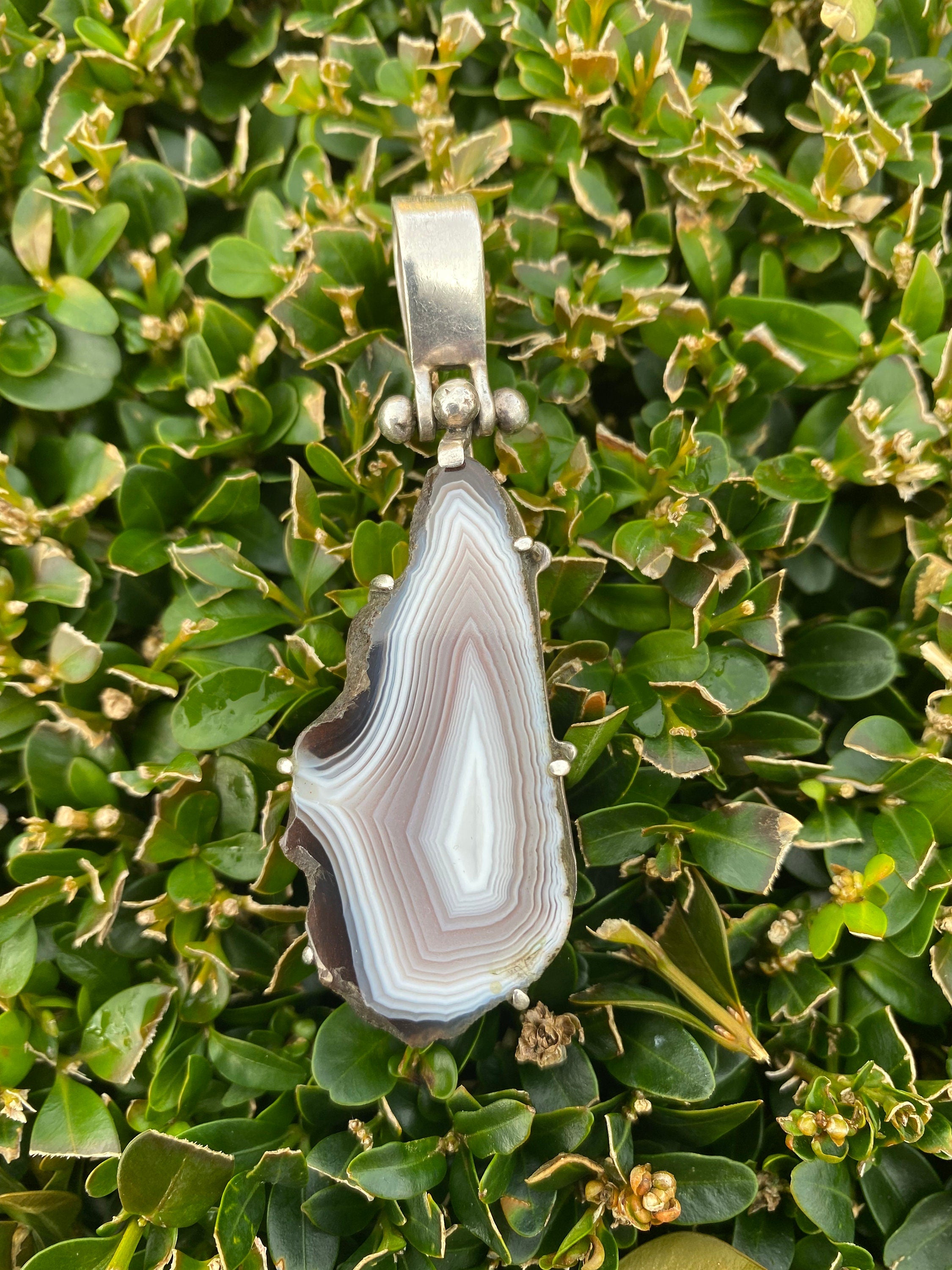 A heavy sterling silver and banded agate pendant