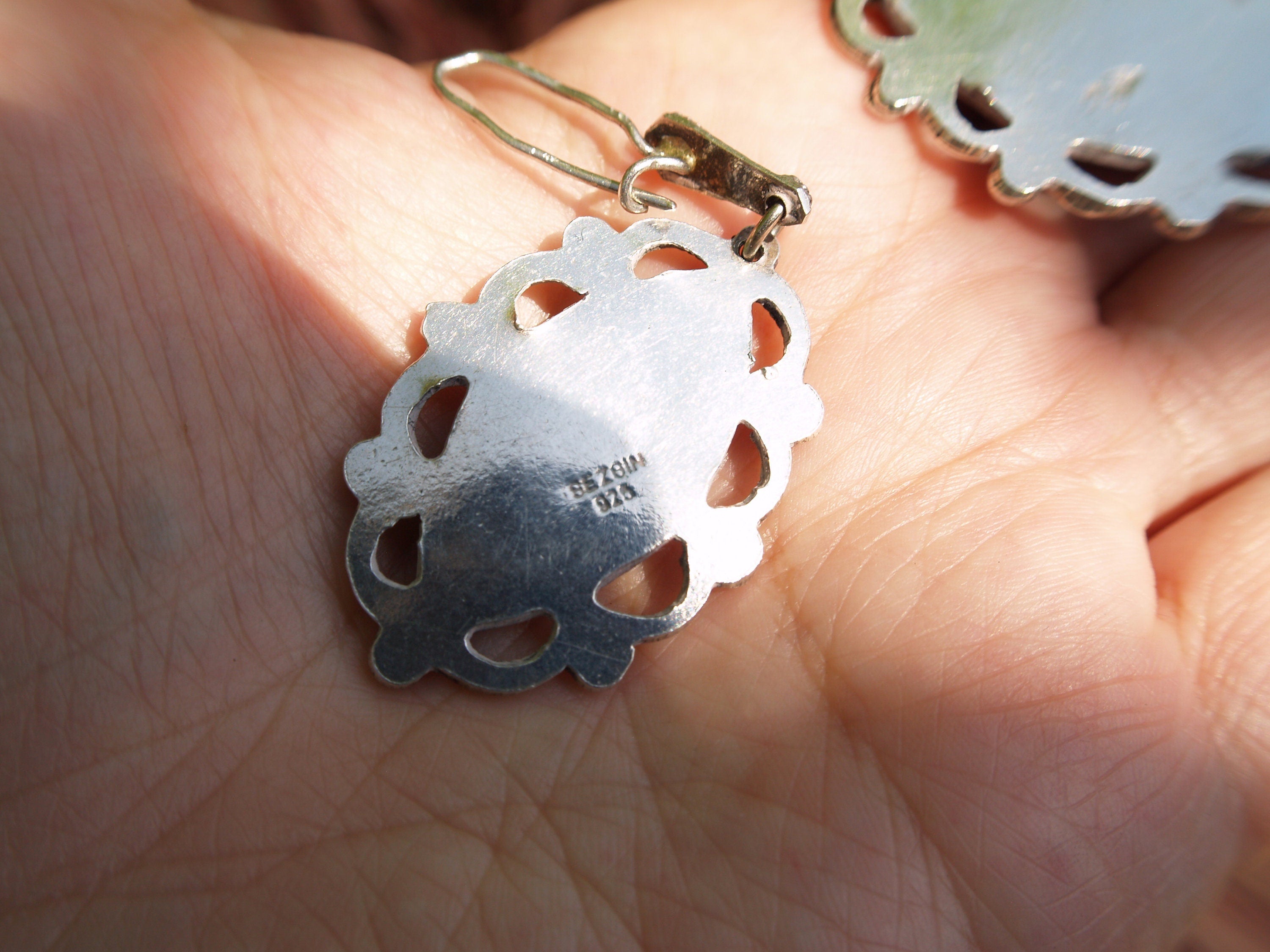Stamped to the back 925 for sterling silver and signed SEZOIN. Indistinct on one.