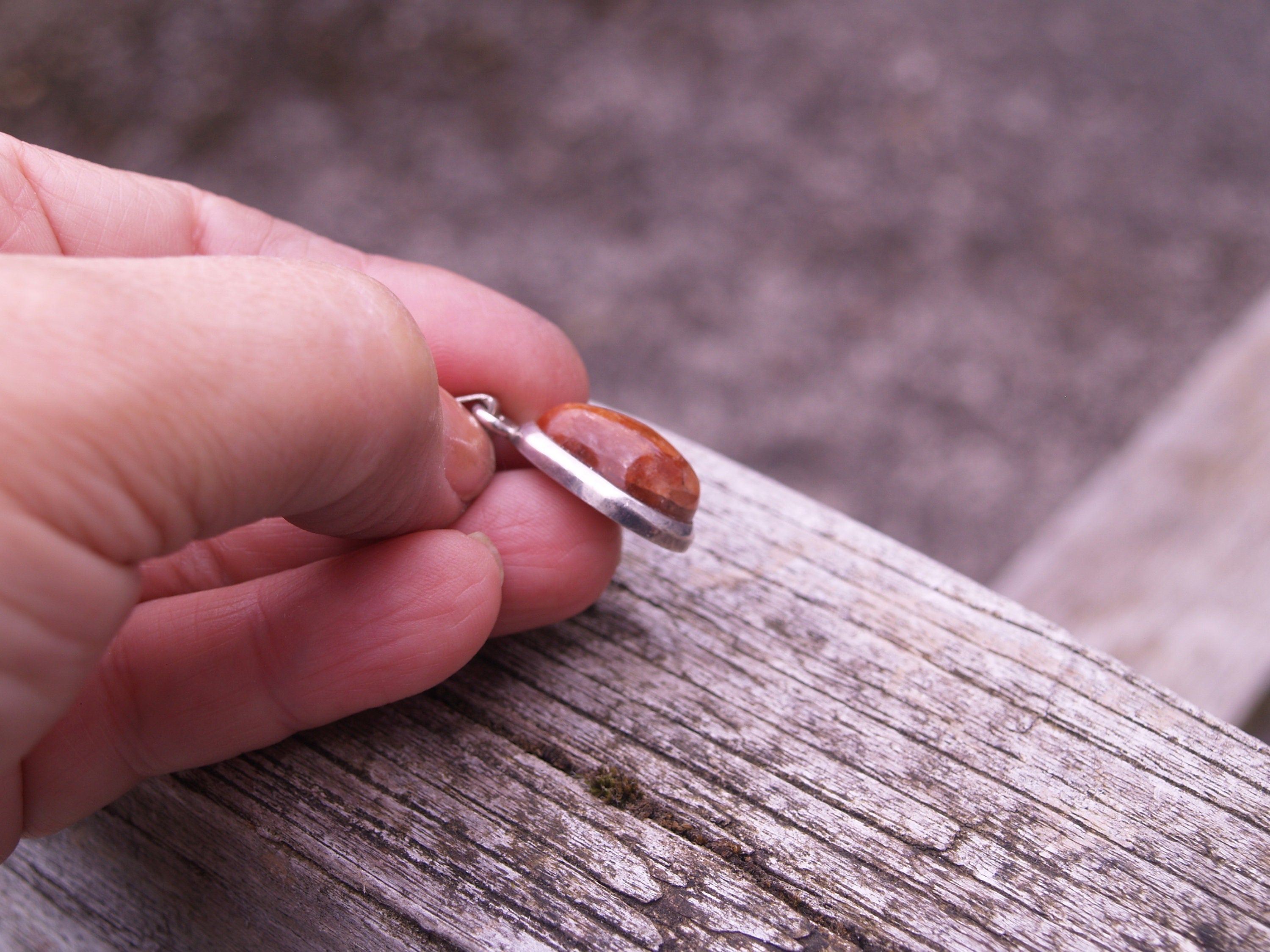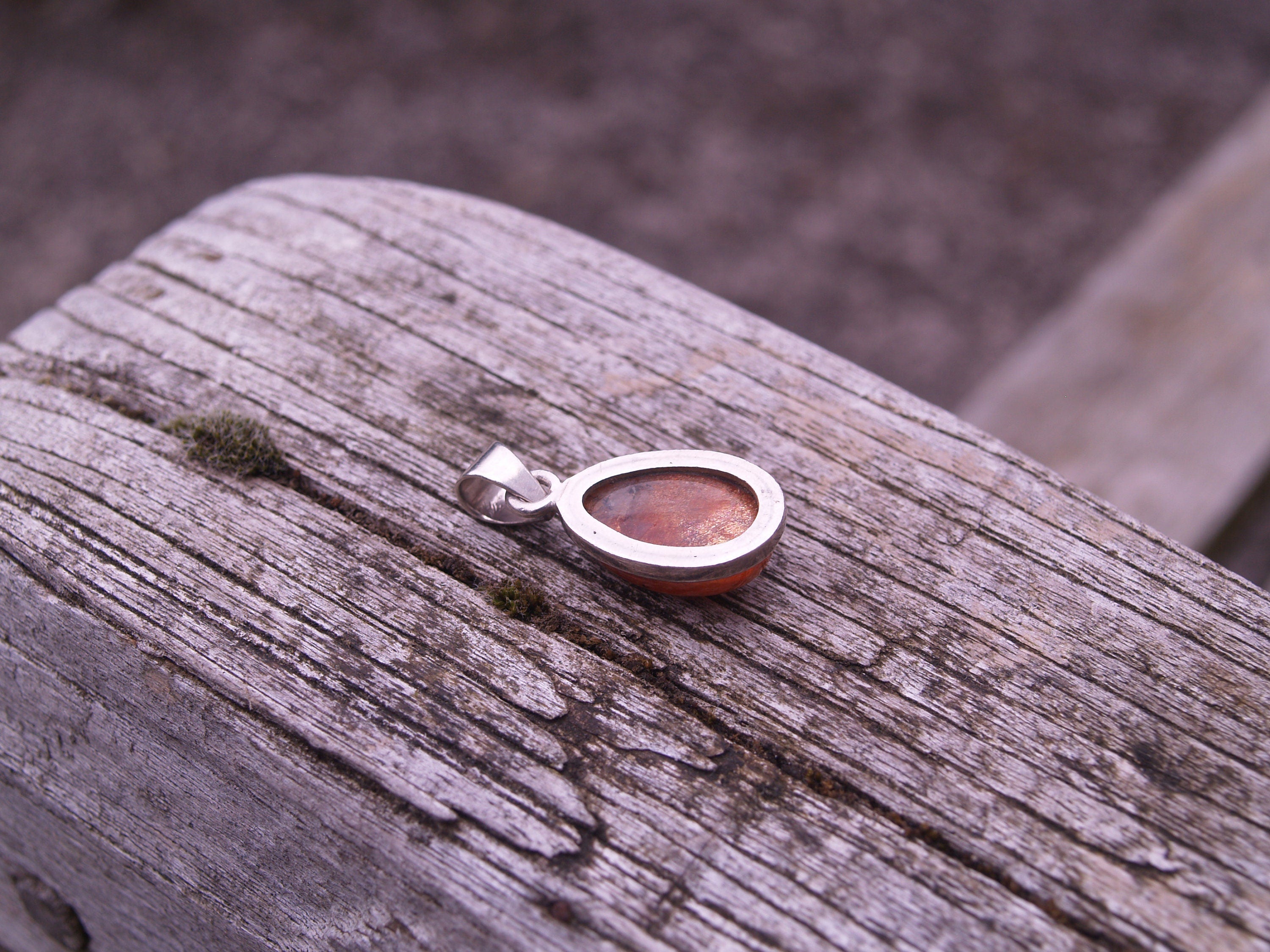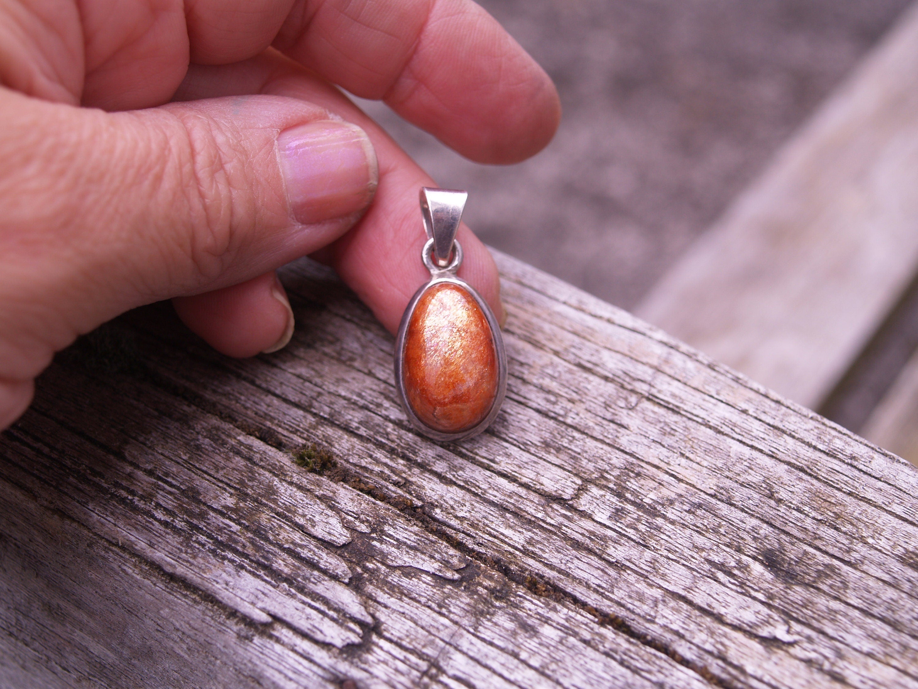 A vintage sterling silver pear shaped pendant set with a shimmering natural Sunstone.